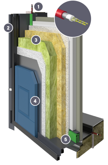 Термокабель поддерживает температуру короба и полотна двери выше точки росы. В зимнее время кабель включается автоматически, что не дает появиться конденсату.